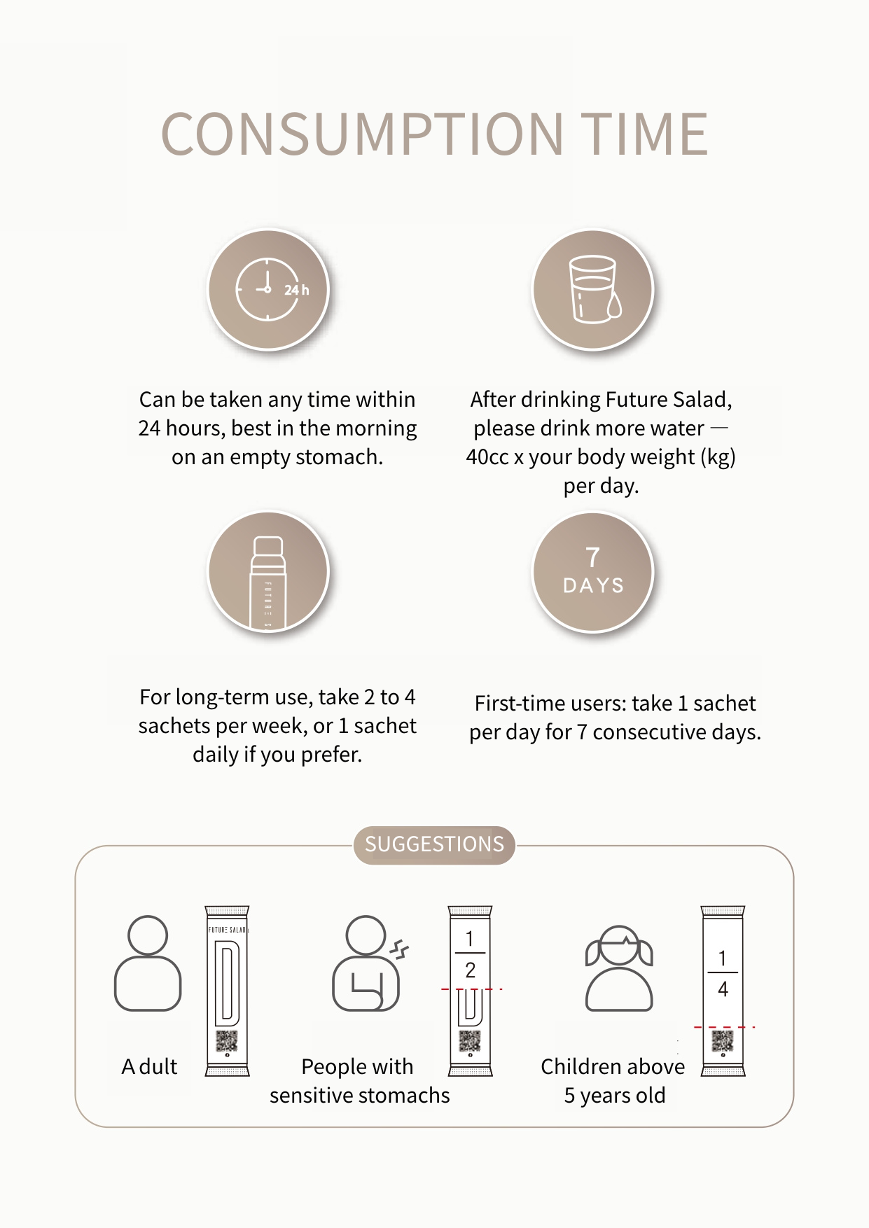 Whether you're looking to improve digestion, or support weight management, each sachet offers a powerful blend designed to promote overall wellness. With a refreshing guava-apple flavor, Future Salad Detox Drink Mix is an easy and delicious way to nourish your body and maintain vitality every day.